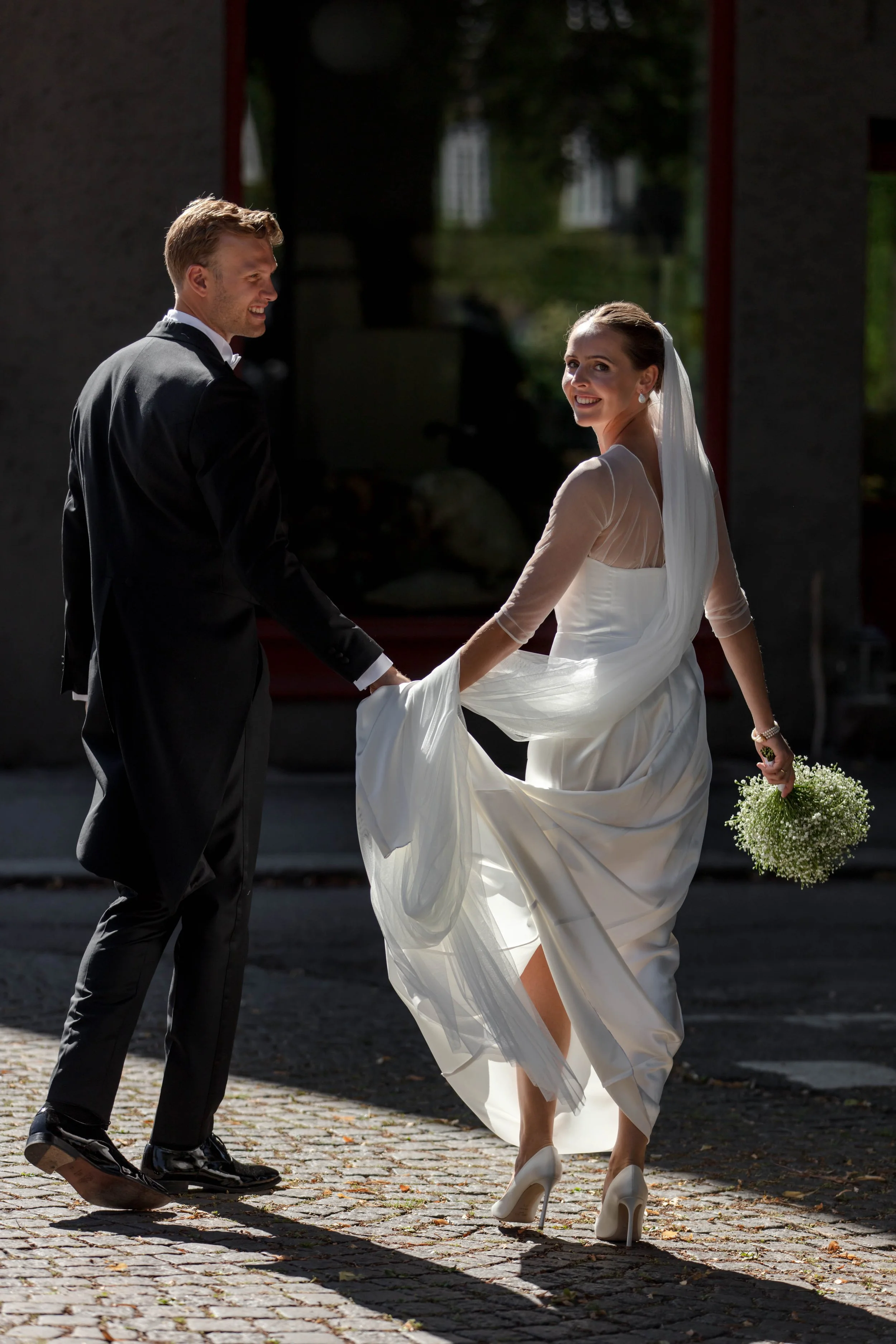 Jeg kan være tilstede under hele, eller deler av dagen, frem til første halvdel av middagen. Jeg tilbyr selvsagt egentid for parbilder, og separat fotografering av forberedelser for brud og brudgom for de som ønsker det - ellers forsøker jeg å være så usynlig jeg kan, for å få fanget flest mulig naturlige og gledesfylte øyeblikk.